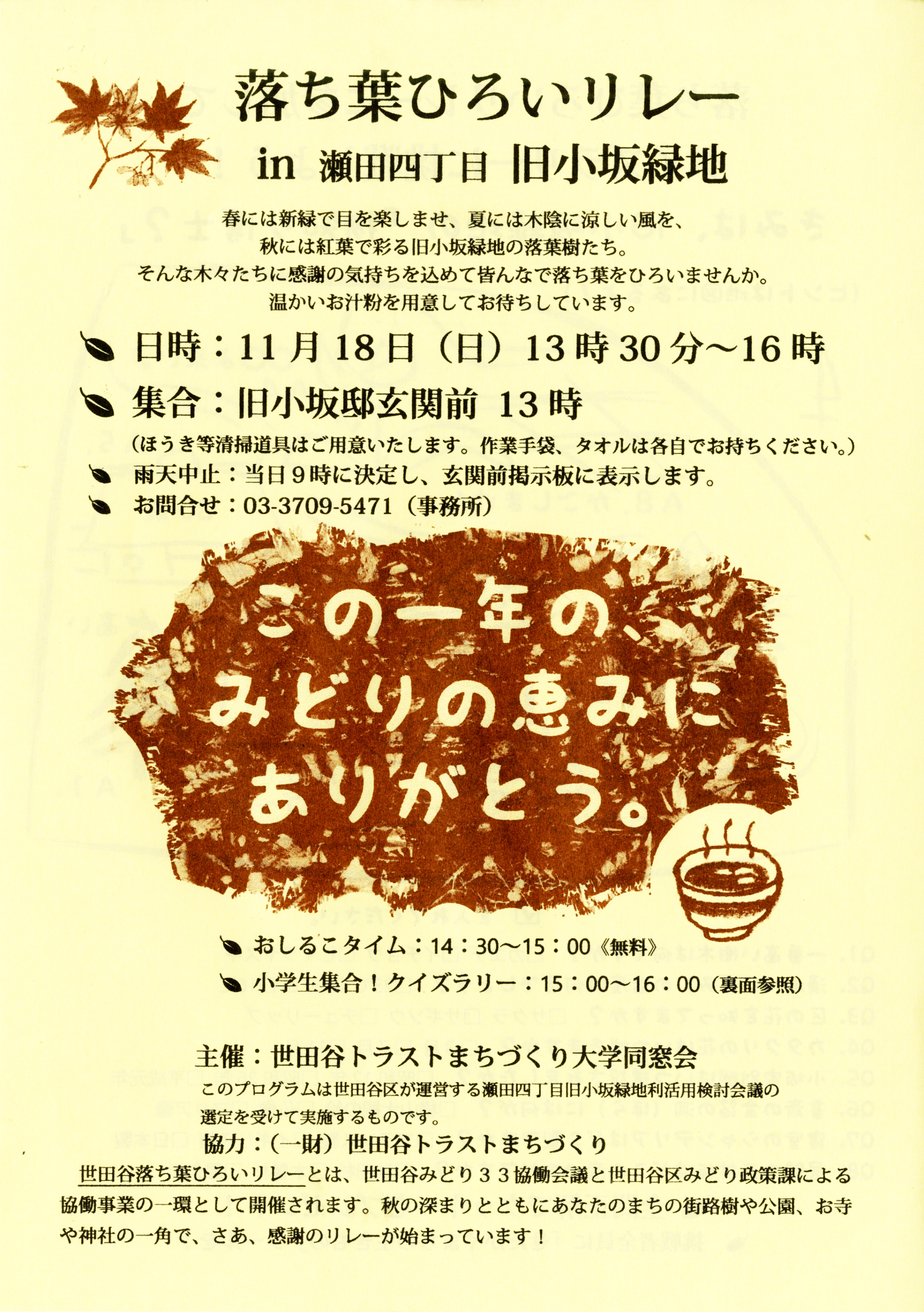落ち葉ひろいリレー in 瀬田四丁目 旧小坂緑地せ